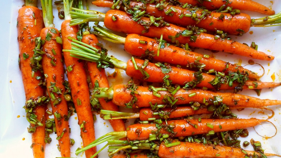 1 bunch Dutch carrots, tops trimmed, and washed (or use 5 – 6 carrots, peeled, and sliced in half lengthwise)