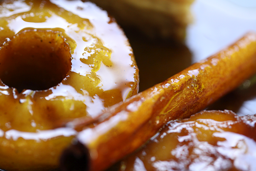 Coarsely grind the spices and salt in a pestle and mortar. Score the skin of the pork at about 1 cm intervals, being careful to not cut into the flesh. Rub the spice mixture into the skin of the pork, and then set aside in the fridge, uncovered for about 3 hours. This will help to draw moisture out of the skin and help get a crispy crackling. Cut the fennel bulb into 1 cm thick slices and cut the carrots in half lengthwise. In a large heavy based roasting pan lay the fennel and the carrots across the base and then place the pork, skin side up onto the vegetables. Bake at 140 C for 2 hours. Turn the heat up to 220 C and roast for another 30 minutes until the skin is crispy. Take out of the oven and rest for about 15 minutes. While the pork is resting, peel and core the apples and then cut in half. Heat a large frying pan over a medium heat and add the butter. When it starts to foam add the apples, cinnamon and star anise and cook for 3 – 4 minutes. Add the brown sugar and verjuice and simmer until the apples are cooked, but not collapsing, and the sauce almost syrupy. Carve the pork and serve with the apples and a drizzle of the sauce.