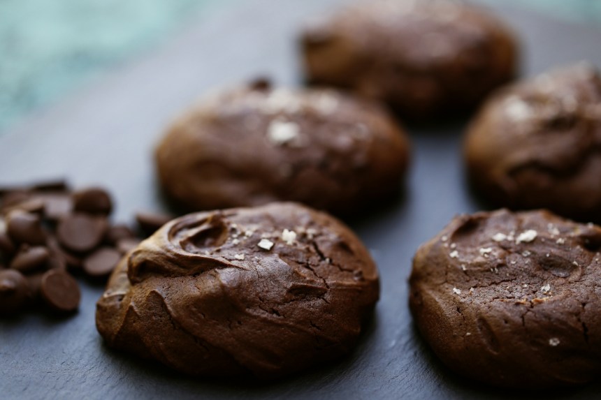 In my part of the world flour has become a scarce commodity, and to scratch my baking itch I decided to make a recipe that used buckwheat flour, all that was available for me to buy this week. I found a few recipes and eventually made an amalgam of my own, using as as a base a recipe by Nigella Lawson and another by David Lebowitz. They are really rich, and soft and ultra chocolaty. They were also the best gluten free cookie I have made; it’s really hard to make a good, chewy-soft gluten free cookie, so it was a double win.